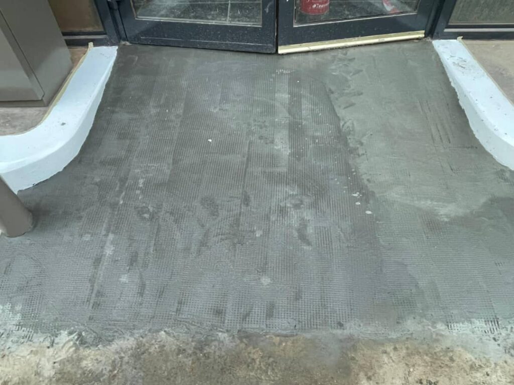 Chape Bouchardée de la rampe d’accès à la boutique.